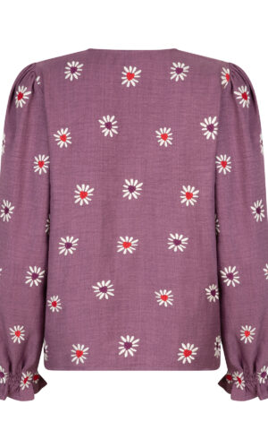 Top Nella is een speelse, vrouwelijke top met een hoge ronde halslijn. De top heeft een licht getailleerde pasvorm en de opening met strikjes aan de zijkant maken de top helemaal af!